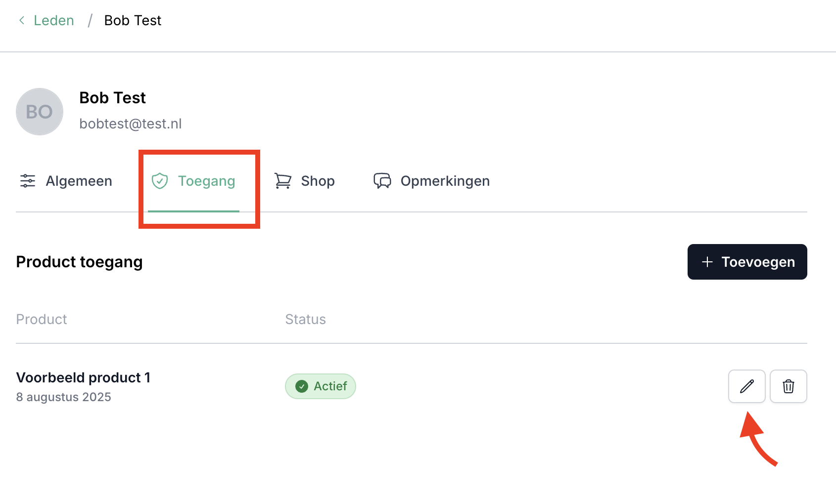 Let op: Op het moment dat je de toegang bij een specifiek lid aanpast zal dit de ingestelde toegang op productniveau voor deze persoon overschrijven.