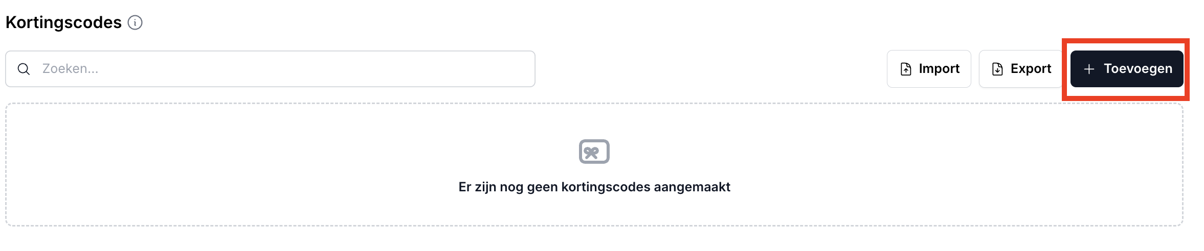 Ga eerst naar "Shop", klik op "Kortingscodes" en kies vervolgens voor "Toevoegen".