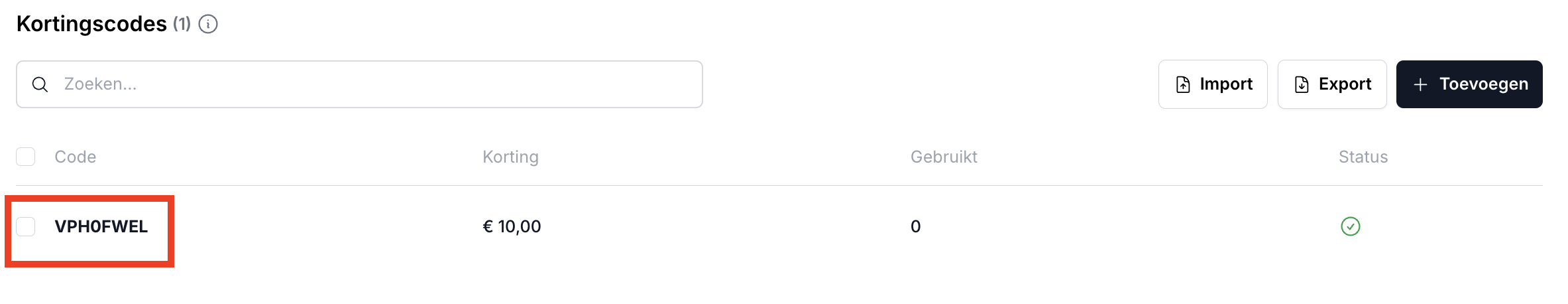 Klik tot slot op de button "Toevoegen" om de kortingscode op te slaan.