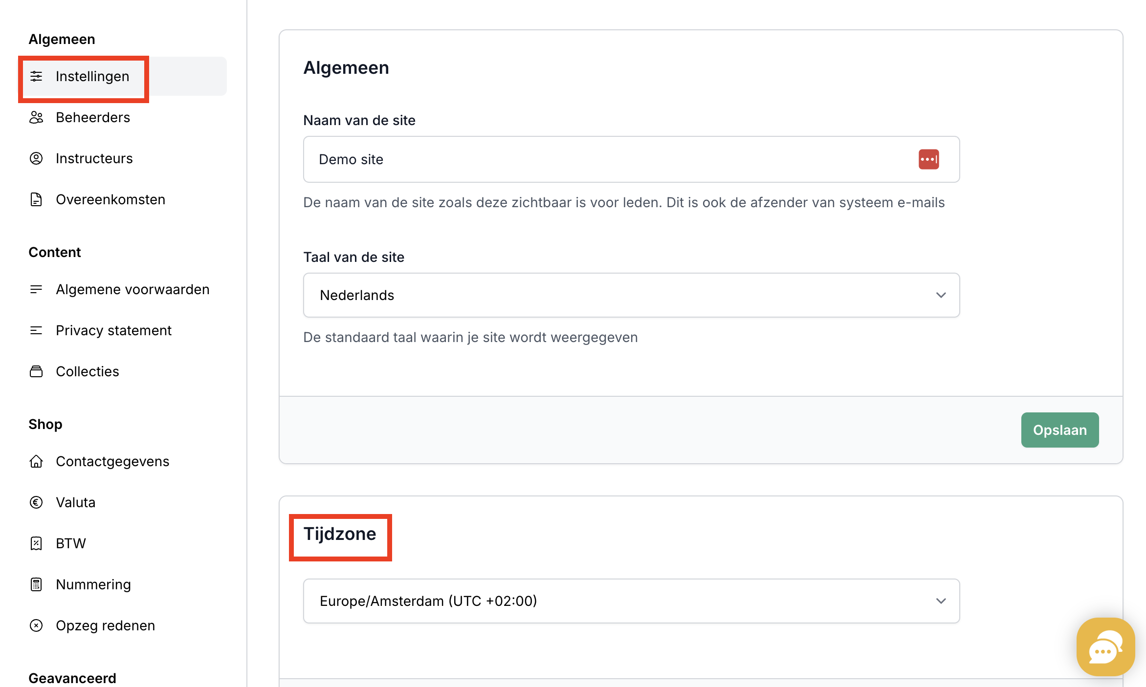 De tijdzone wijzigen kun je doen door op "Instellingen" te klikken en vervolgens zie je beneden "Tijdzone" . Hier kun je nu simpelweg de gewenste tijdzone selecteren. Klik tot slot nog even op "Opslaan".