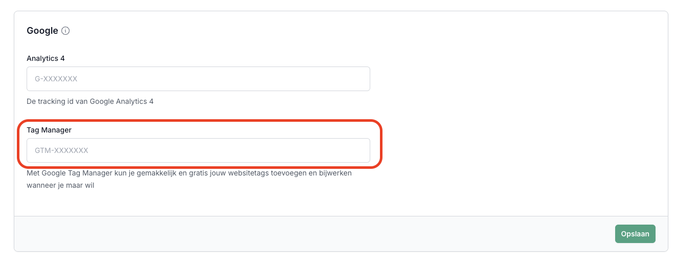 Google Tag Manager is een gratis tool waarmee je zelf tags (ook wel scrips of codes) kunt toevoegen aan je website. Hiervoor dien je eenmalig de code van Google Tag Manager in de ledensite te plaatsen. Daarna kun je alle tags zelf plaatsen. Denk hierbij aan tags van tools zoals Hotjar of Google Ads. Ook het inrichten van gebeurtenissen (events) kun je gemakkelijk zelf doen.