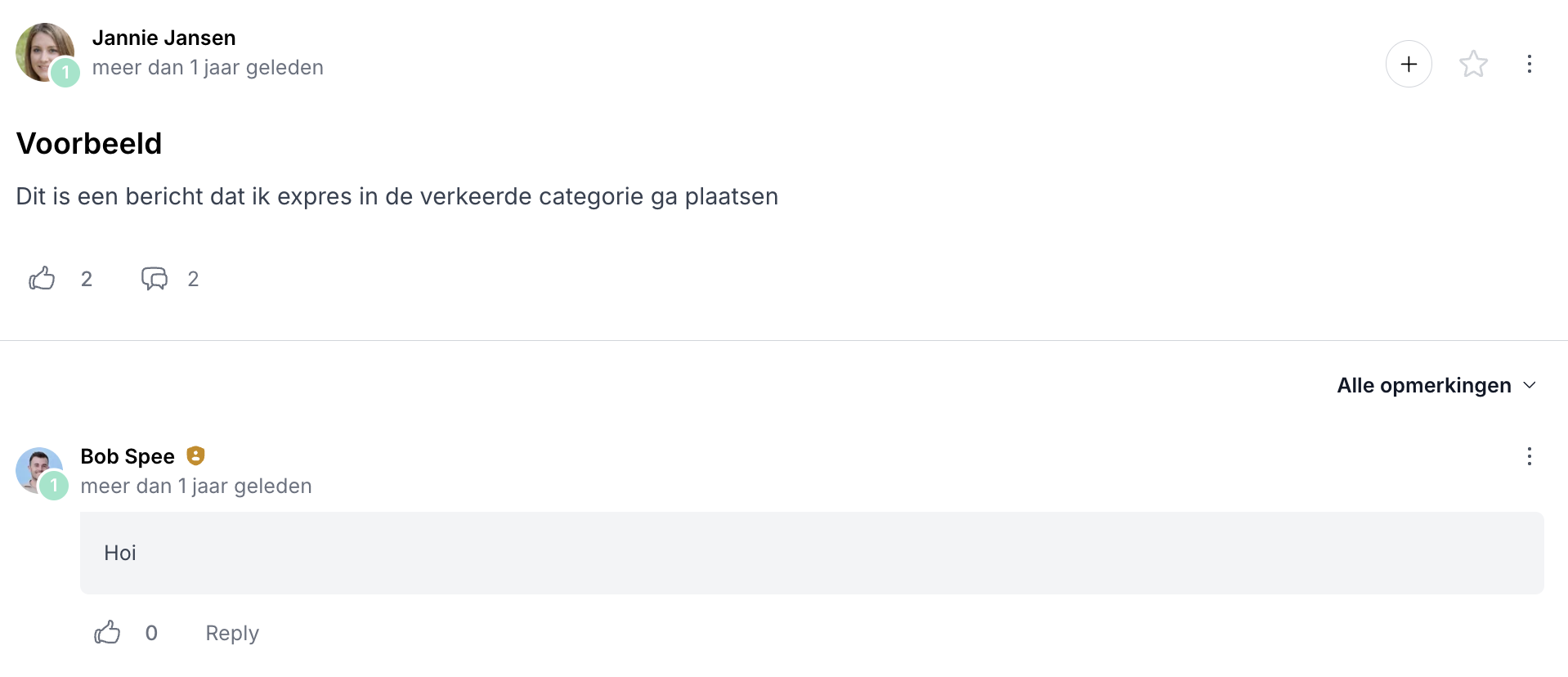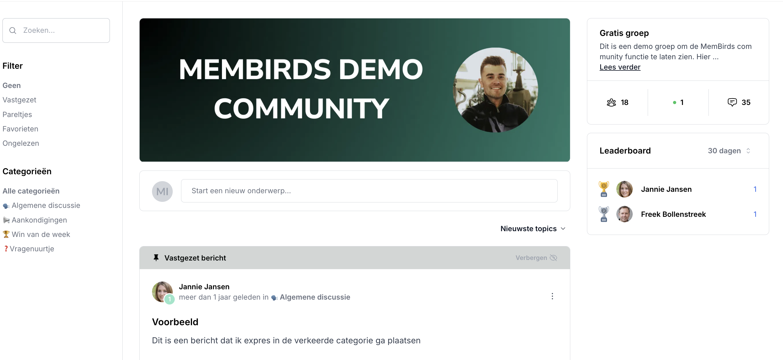 Wanneer jij of een van je leden een bericht plaatst in je community, hebben andere leden de mogelijkheid om een like of een reactie achter te laten. Voor elke like die een lid krijgt, ontvangt hij of zij 1 punt in het Leaderboard dat je rechts in beeld kunt terugvinden.