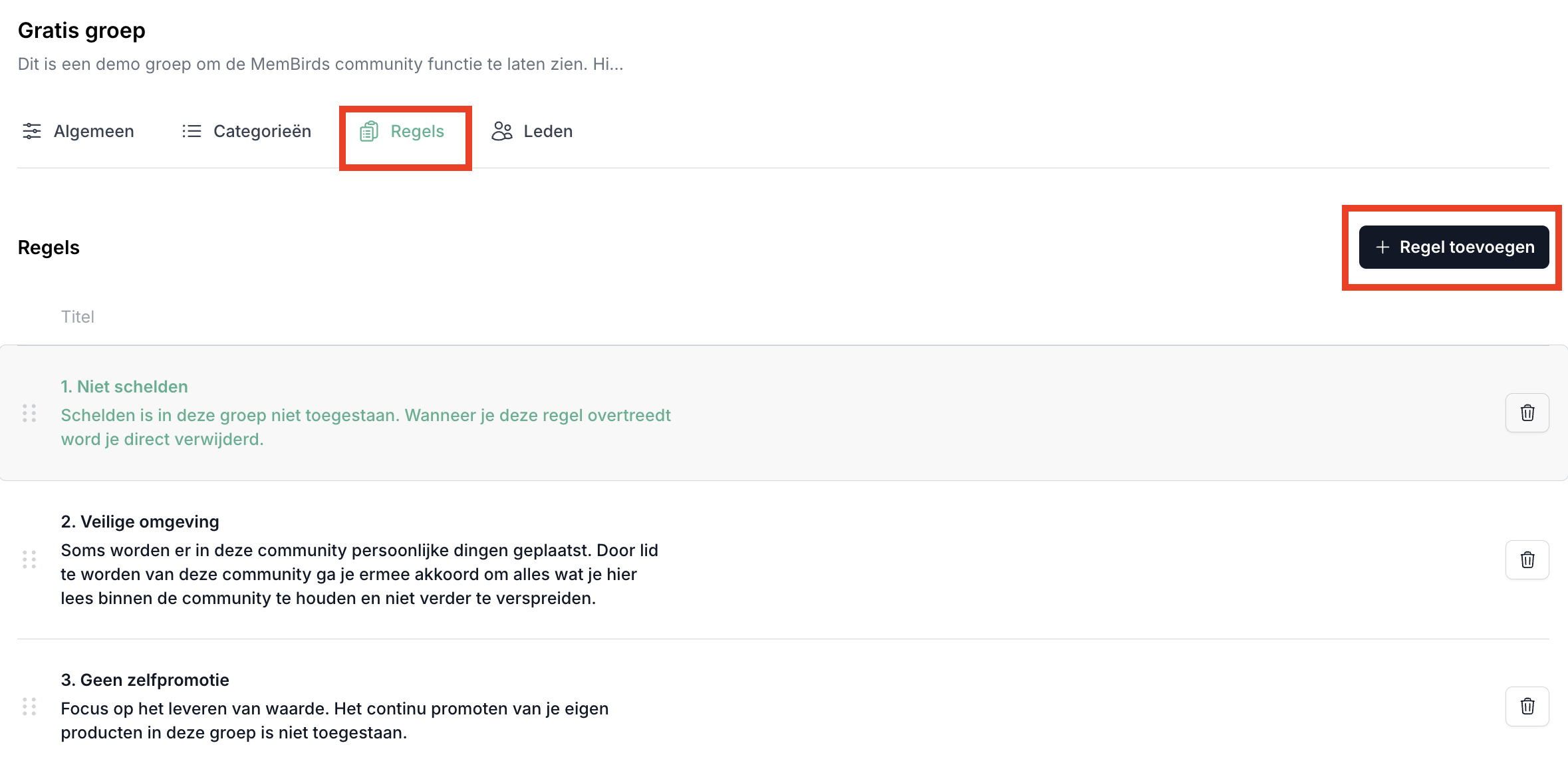 Per groep in je community heb je de mogelijkheid om regels toe te voegen waaraan leden zich moeten houden. Hoe je dit doet is als volgt: